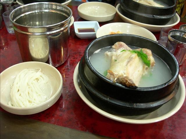 坐車去吃晚餐,"人蔘雞"怎麼跟我三年前去濟洲島時差那麼多,當時第一餐也是人蔘雞。難道是團費的差距?才第一餐就打槍,算了!出外郎呷一下止么。